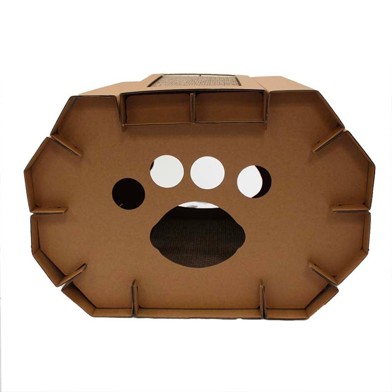 Grazie agli inserti graffiabili posizionati strategicamente sia sulla parte superiore che all'interno, il gatto può sfogare il suo naturale istinto di affilare gli artigli, proteggendo così i mobili e i tappeti di casa. Il design a "casetta" offre un luogo riparato per i sonnellini, soddisfacendo il bisogno di privacy tipico dei felini. Leggera, ecologica e amata dai tester a quattro zampe di tutto il mondo.