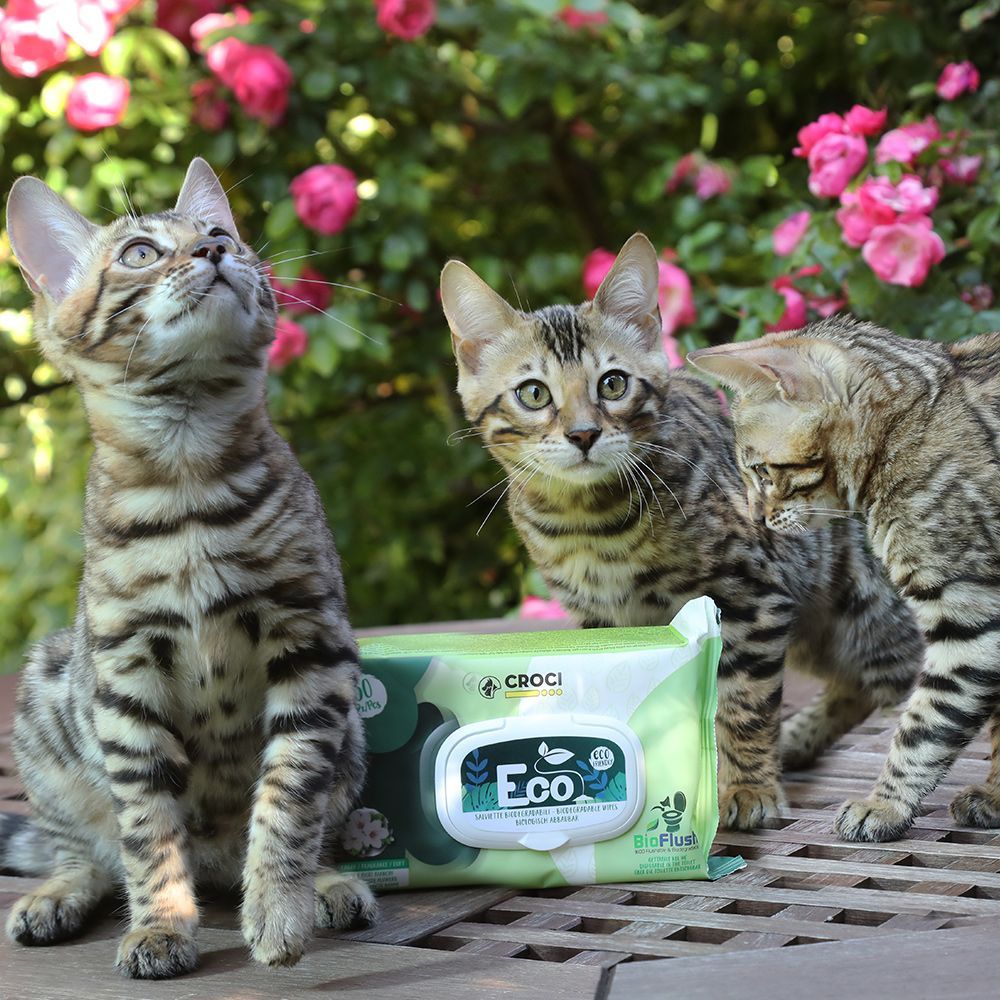 Queste salviette fanno parte della linea Eco by Croci e sono 100% biodegradabili, realizzate con un tessuto certificato che rispetta elevati standard ambientali. Grazie alla loro composizione, possono essere smaltite nel WC, offrendo una soluzione pratica e sostenibile per la pulizia quotidiana di cani e gatti.
